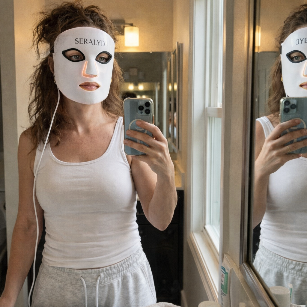 Seralyd RegenMask™ uses clinically studied LED wavelengths commonly used in professional dermatology settings — now reengineered for safe, effective use at home.